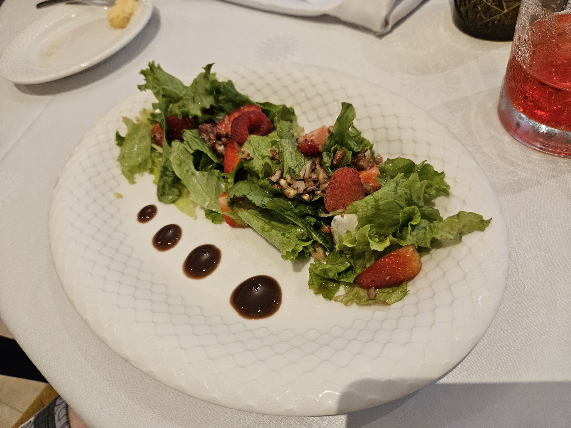 Although the setting was lovely, the main food wasn’t as good as the Italian. The beef filet looked good but was quite tasteless which was a shame. The desserts were a saving grace and kept us from knocking it down to a 6.