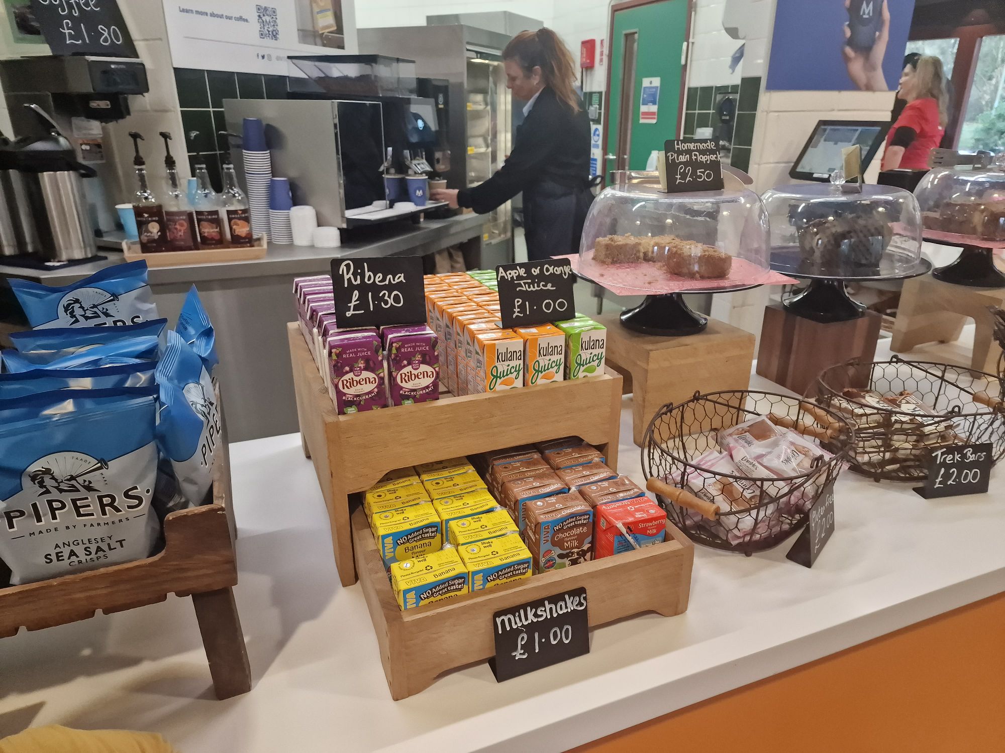 Serving a range of hot and cold drinks and snacks (although no Victoria Sponge cake which was disappointing!) but very reasonably priced a hot drink and tray bake slice was only £3.60.
