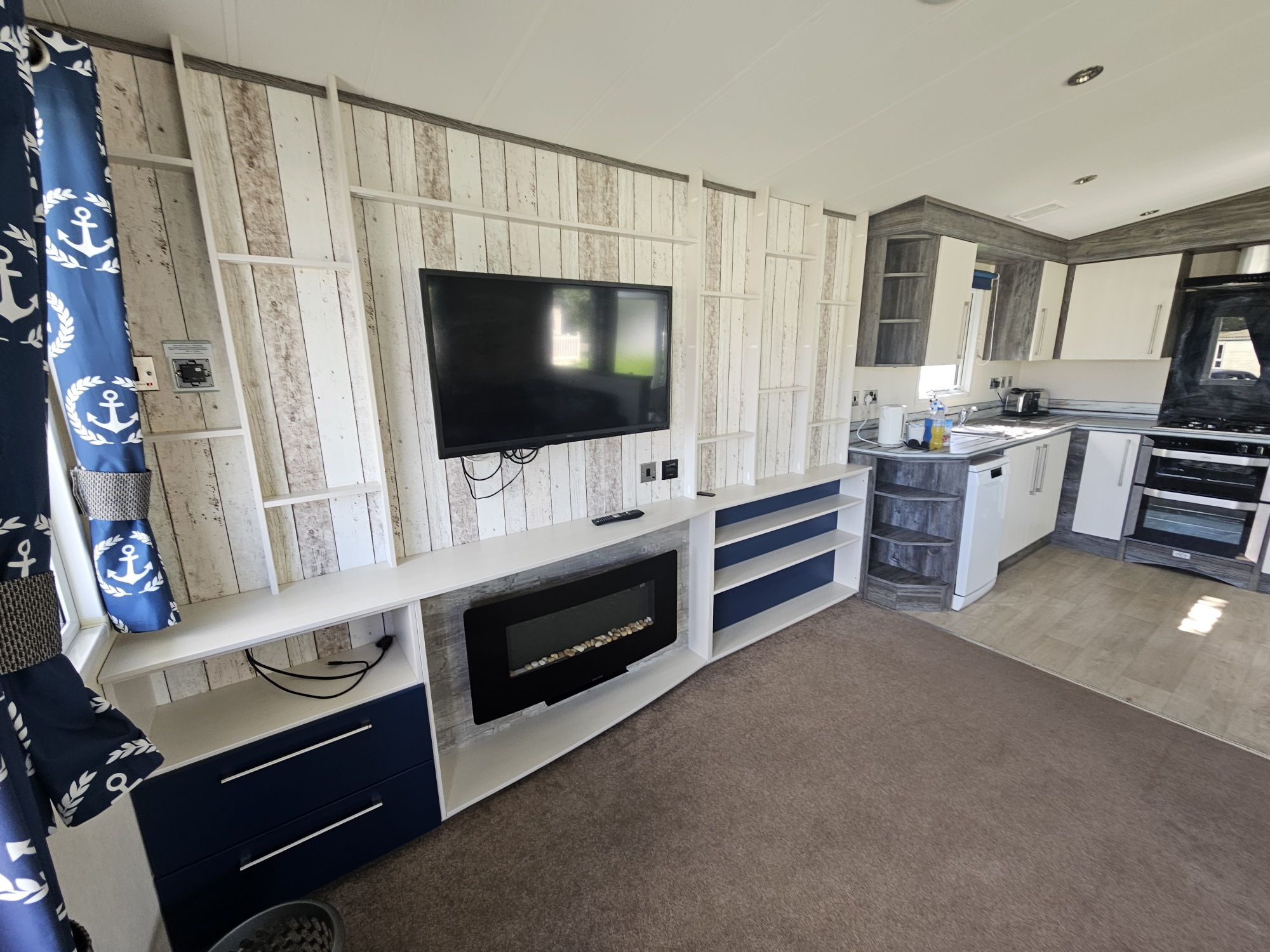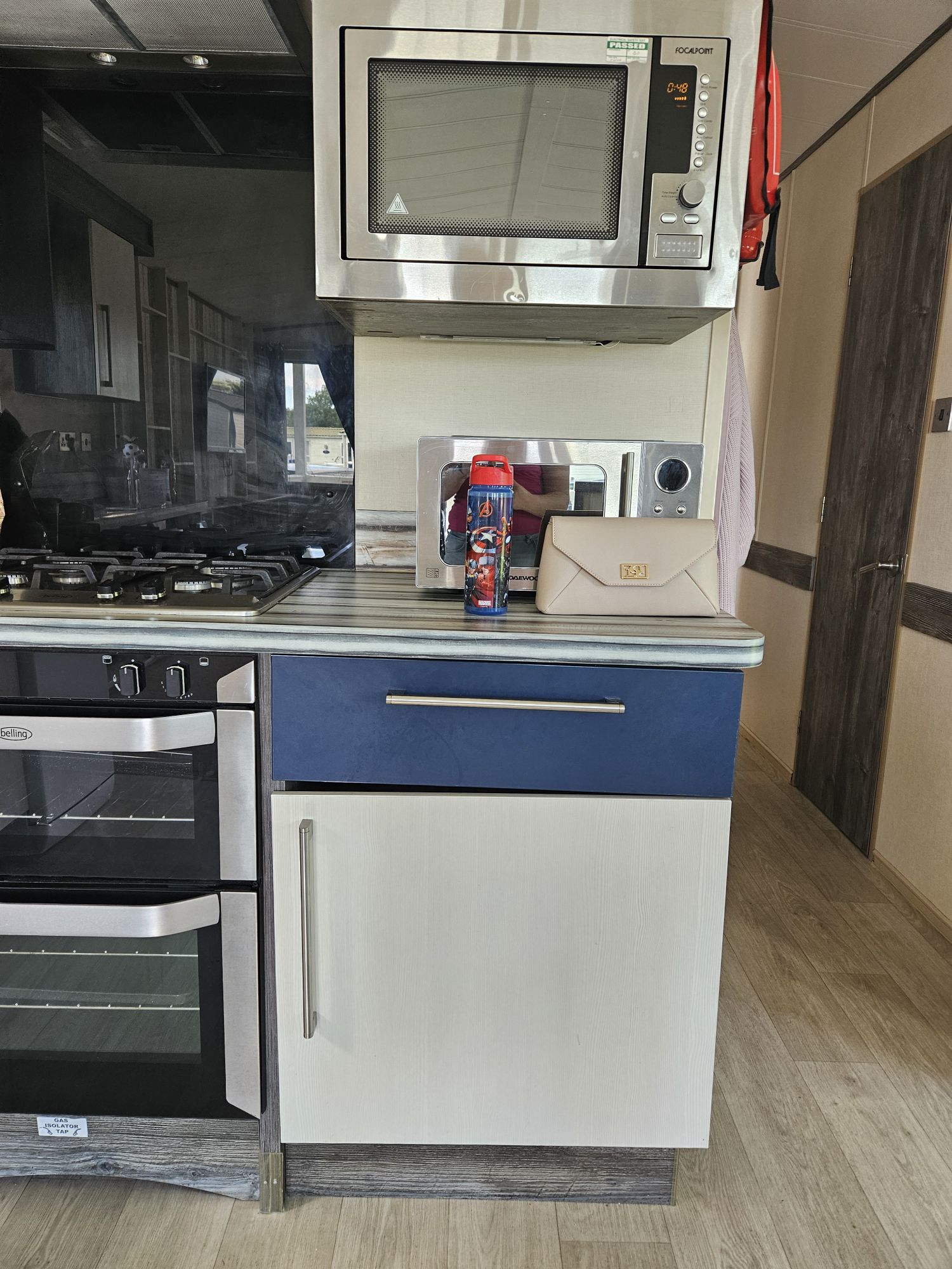 The caravan looked like it possibly hadn’t been used for a while and there were cobwebs everywhere, the grill pan was very used, there was food debris over the bedside tables, one of the kitchen cupboards was broken and to top it off the bedroom TV was broken!