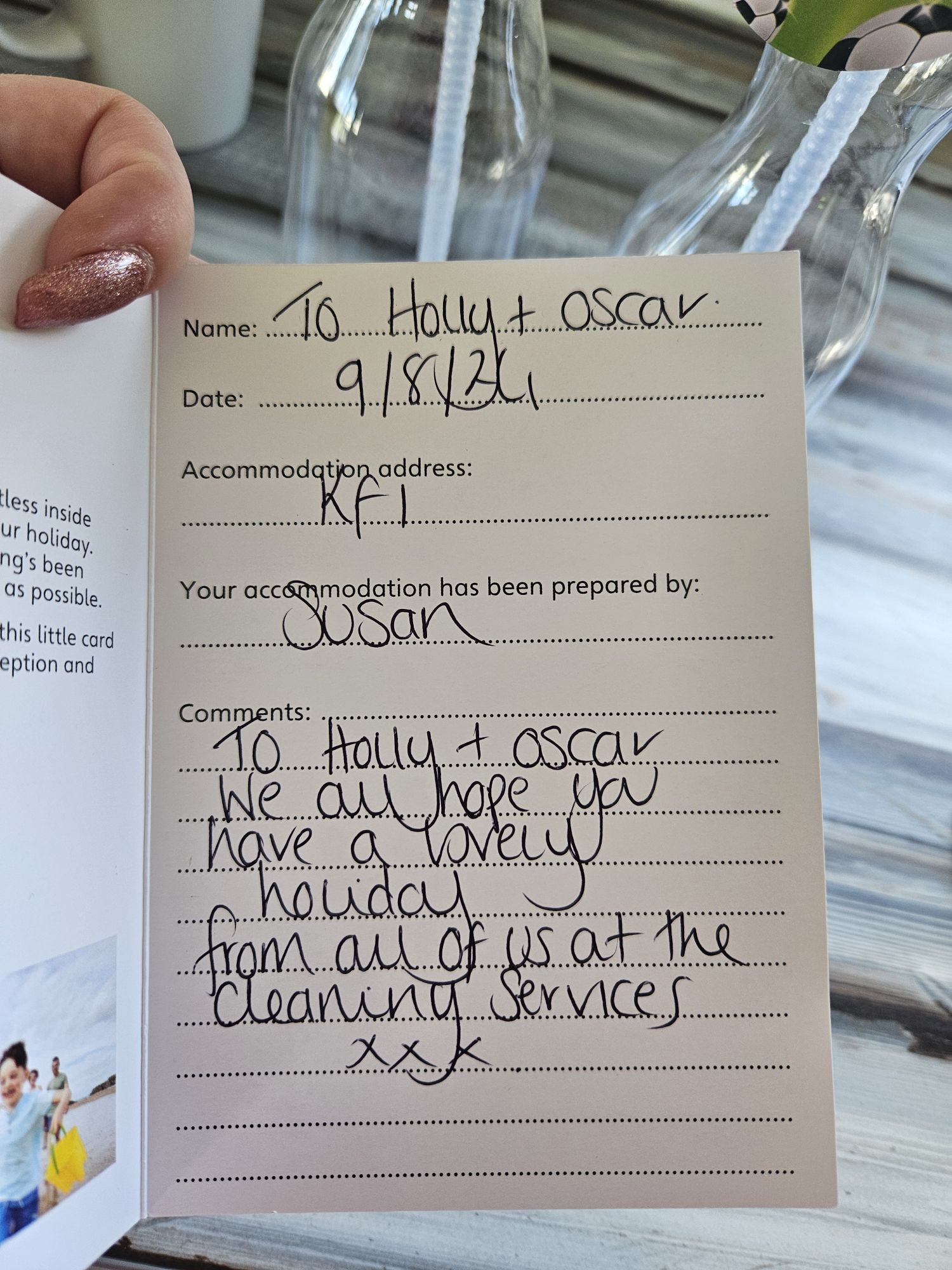 The sales guy left the kids some drinks bottles and the cleaner left a cute little note too.